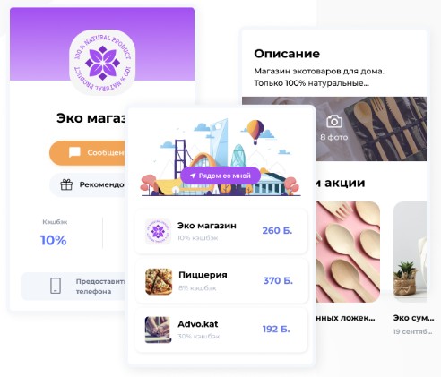 Клиент может рекомендовать вашу компанию через приложение и зарабатывать баллы, если его друзья и знакомые приходят и покупают у вас. Вы увеличиваете количество клиентов по рекомендациям.
